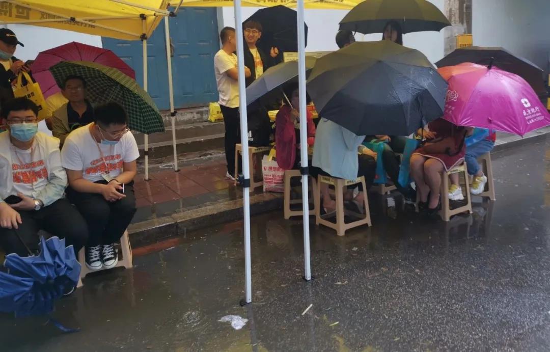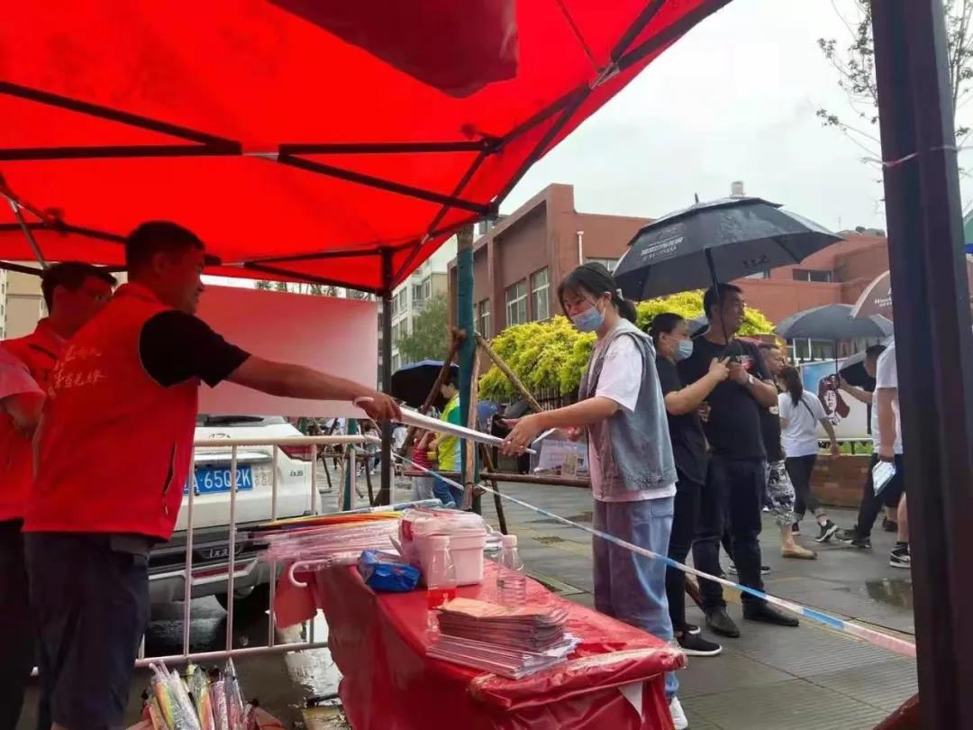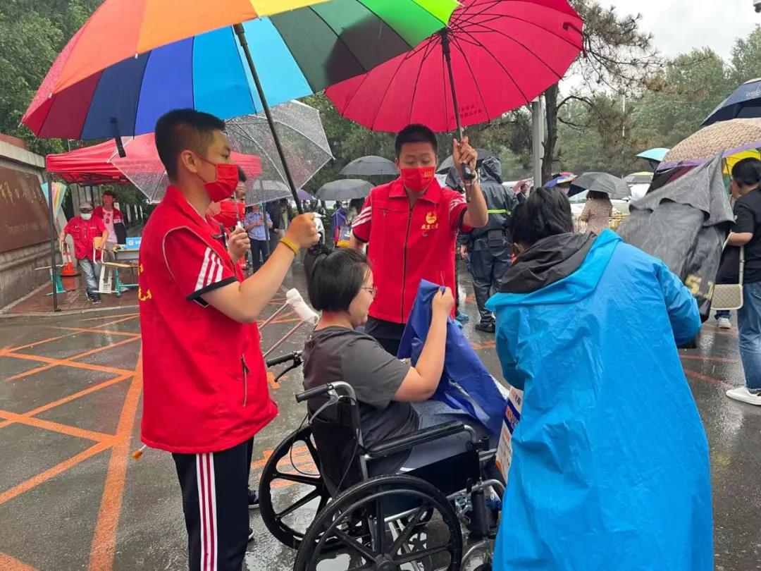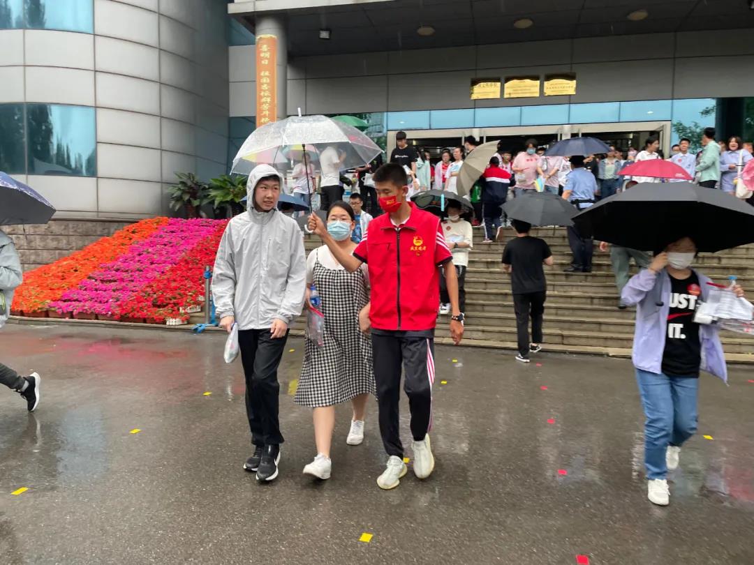 很多考点都安排了志愿者,对没带伞学生进行点对点送到校门口,家长迎接处确保考生不淋雨,这一幕幕,都体现了对考生的关爱。